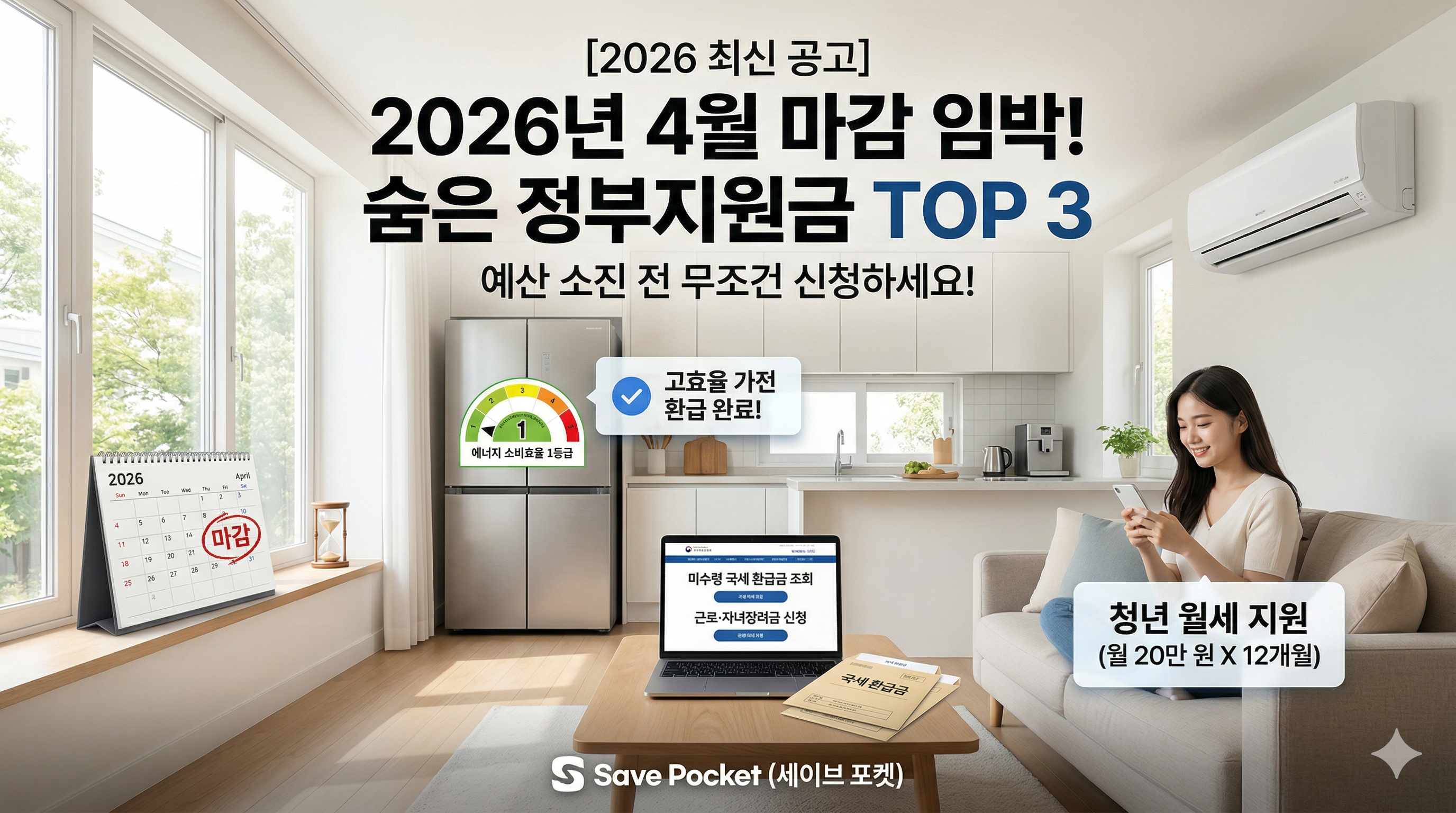 [2026 최신 공고] 2026년 4월 마감 임박! 예산 소진 전 무조건 신청해야 할 숨은 정부지원금 TOP 3